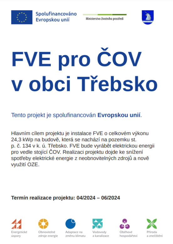 V roce 2024 byla na střeše Víceúčelového objektu Třebsko vybudována fotovoltaická elektrárna sloužící pro potřeby ČOV.